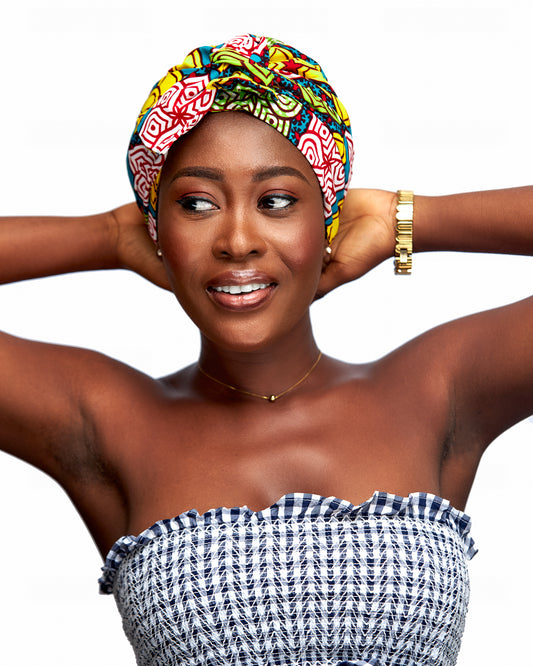 Wholesale (Bulk) Ankara/ Bogolan And Kente Silk Lined Bonnet With Band