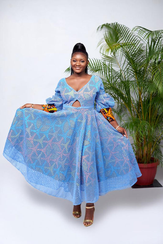 Gina Maxi Flare Buttoned Cluffs Puff Sleeve Dress