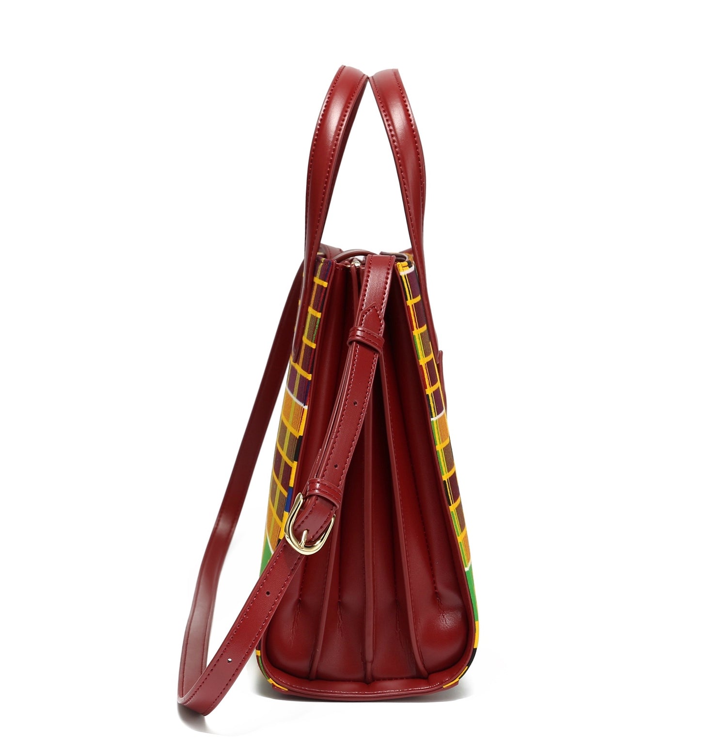 Adesua is a modern-day icon with a blend of traditional Kente wax Print and leather . Adesua means"To be surrounded by wealth "in the Esan language and is of the Nigerian origin.Adesua handbag has 3 compartments for easy everyday organization and side straps that adjusts when you need a little more room. Carry by the handles or attach the adjustable strap for hands-free wear