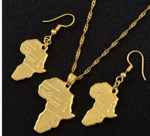 Africa Map Jewelry set Pendant Necklaces Earrings Gold Color