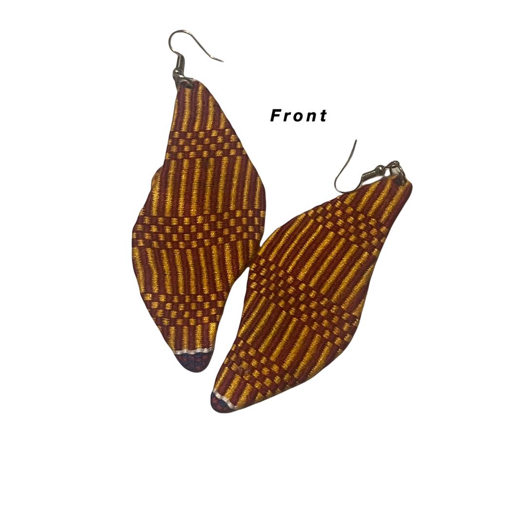 The African Style,Beautiful handmade kente cloth earrings Made in Ghana. Earrings are light weight covered with Quality Handwoven Kente cloth. Earrings shown are About 3.0” or more. unique one piece only earring lightweight for looking glam and feeling feminine