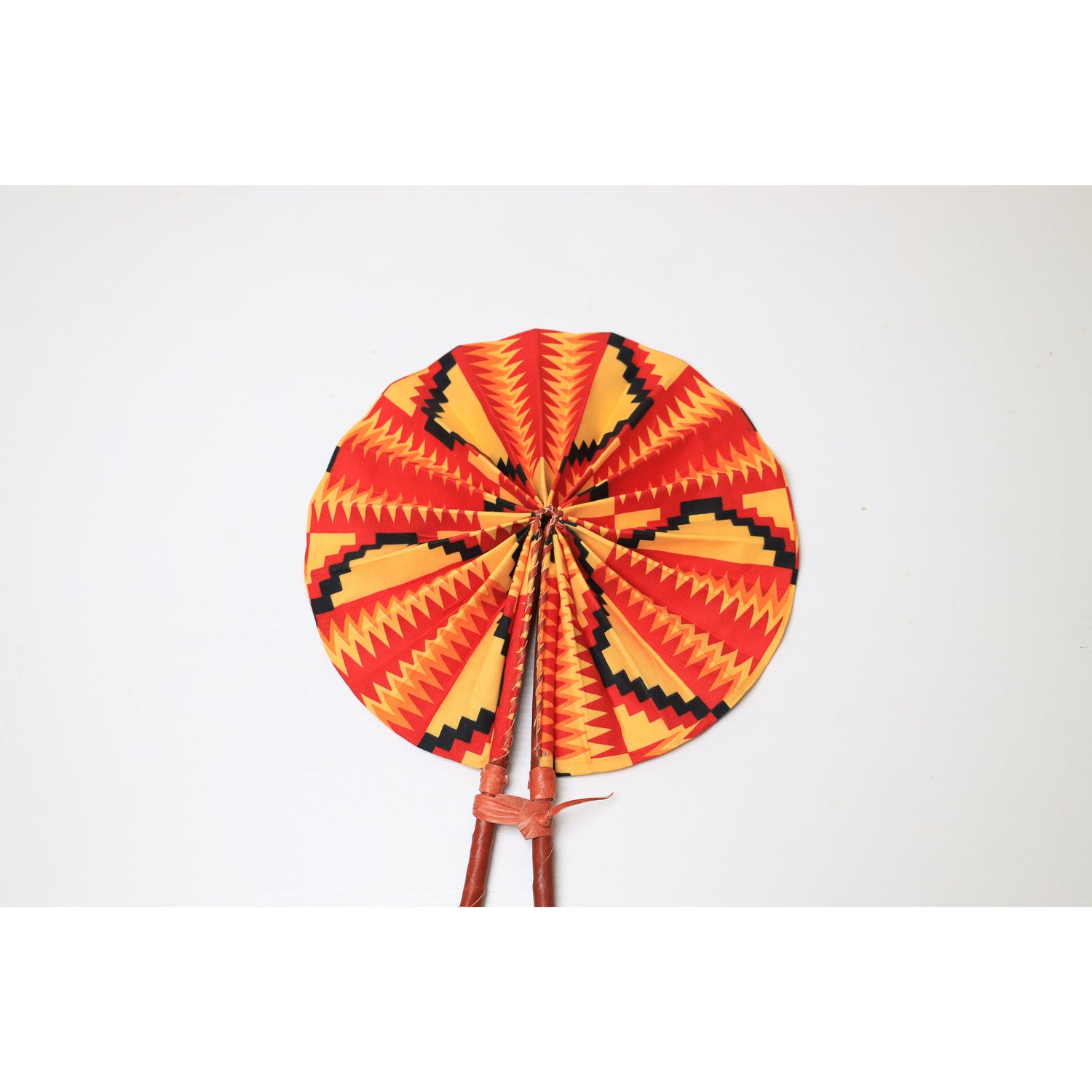 This is a Beautiful, African, hand-held fan, made from colorful Kente African fabric crafted in the genuine leather handle and finishing. Fits into your purse as it folds into approximately 12”x 2.5”. Diameter when open is approximately 12”x 15” Ideal for home decor or cooling yourself off in tropical summer weather, perfect for a gift and wedding favors. Find one for your African dress accompaniment. We take large wedding orders.