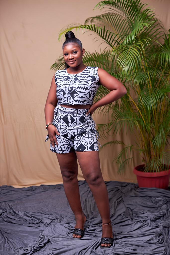 • Black And White Ghana Batik Tie and Dye  2 Piece Set Crop Top And Lace Up High Waist Shorts