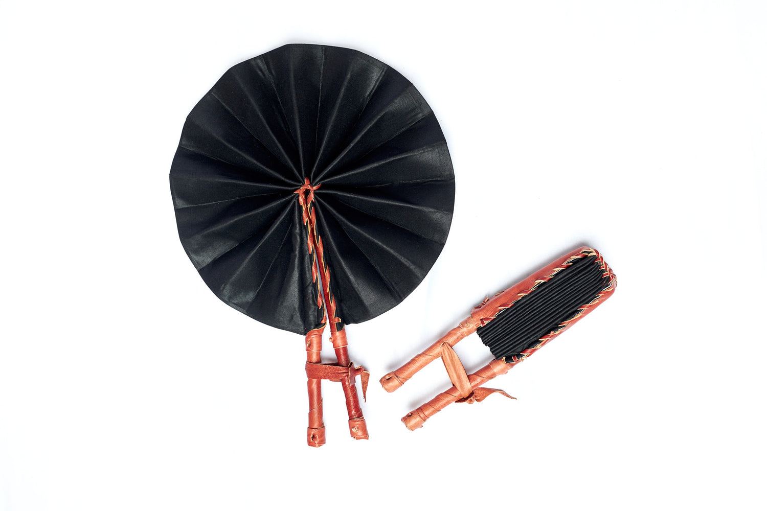This is a Beautiful, African, hand-held fan, made from colorful African fabric crafted in the genuine leather handle and finishing. Fits into your purse as it folds into approximately 12”x 2.5”. Diameter when open is approximately 12”x 15” Ideal for home decor or cooling yourself off in tropical summer weather, perfect for a gift and wedding favors. Find one for your African dress accompaniment. We take large wedding orders.