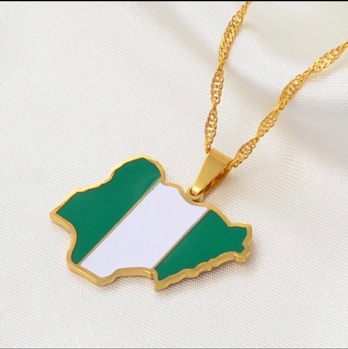 Colorful Flags Nigeria Map Stainless Steel & Enamel Pendant Necklaces National Jewelry