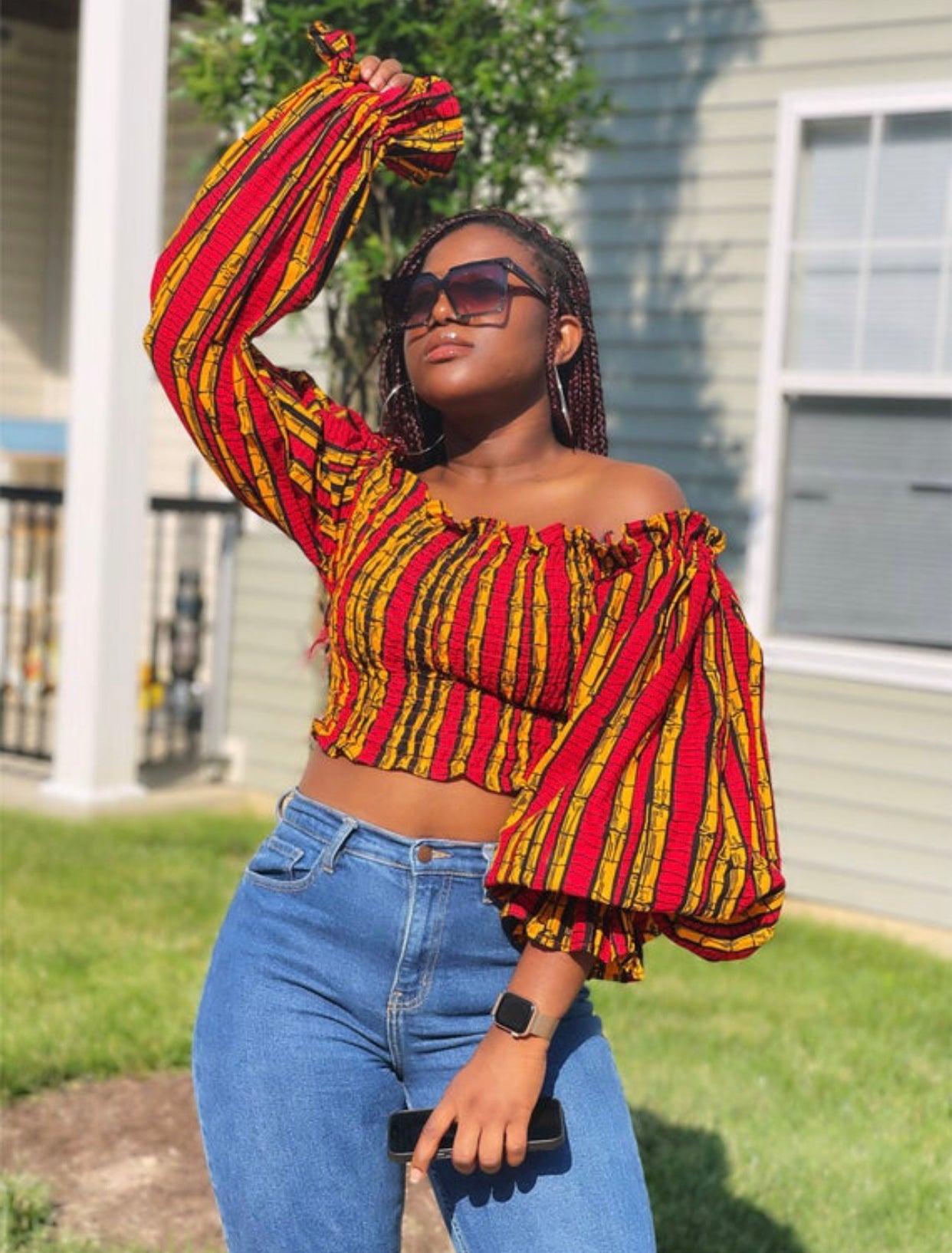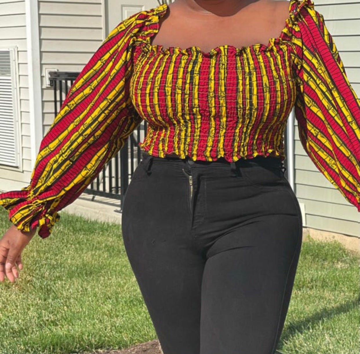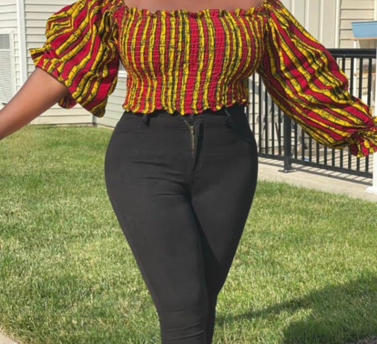 Off Shoulder Smocked Bishop Sleeve Elastic Shirred Crop Top Blouse, Easy to dress it up with Shorts or Jeans or Leggings. This blouse make you look more Sexy, Stylish and Cute. Loose fit for most body shapes.
