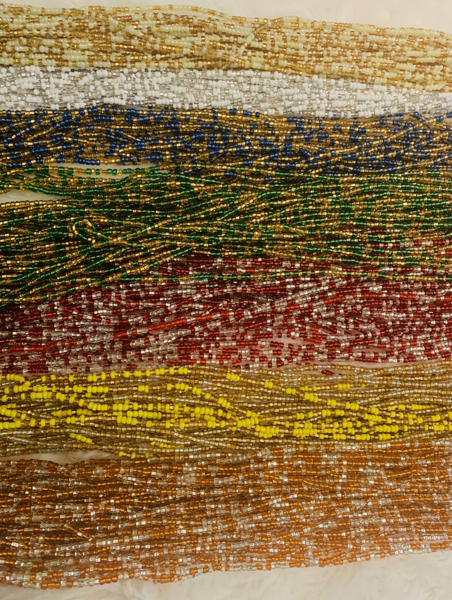 PLEASE measure your waist to ensure that your beads sit on the area that you desire. To easily measure your waist choose a location along your waist or under your navel where you would like your beads to sit and wrap a string or fabric measuring tap around that area of your waist with your stomach relaxed. Do not hold the string or measuring tape around your waist tightly as that may cause a wrong measurement or a tightly fitted set of waist beads (which will ultimately end up rolling up to the next smallest area along your waist). If you are using a string to measure your waist mark on the string the area that the two ends meet and using a ruler or whatever other measuring devices you own to measure the string. This is in case you happen to own one of those metal measuring tapes that aren't really that flexible.