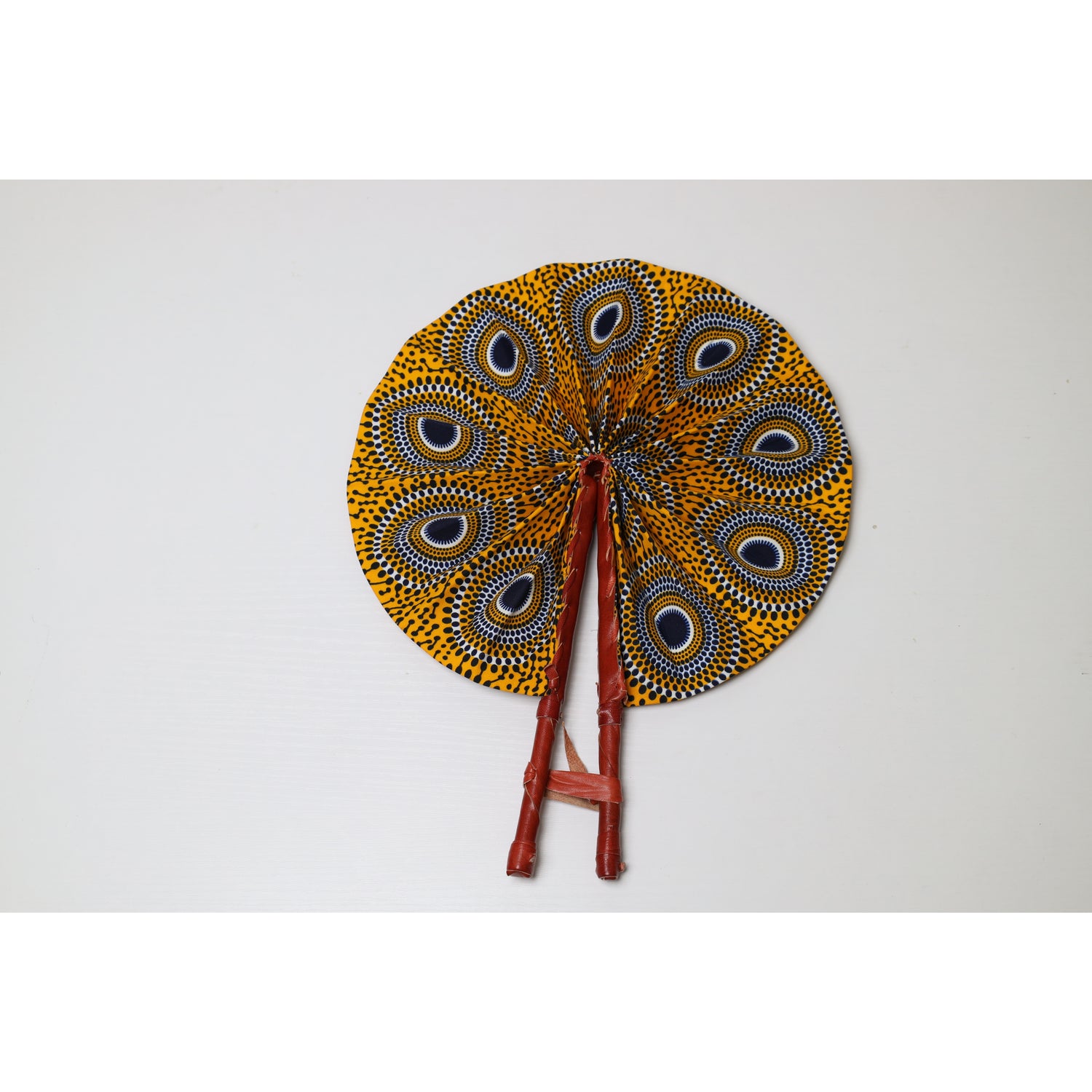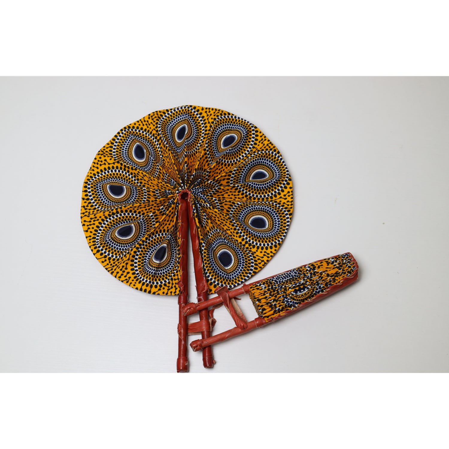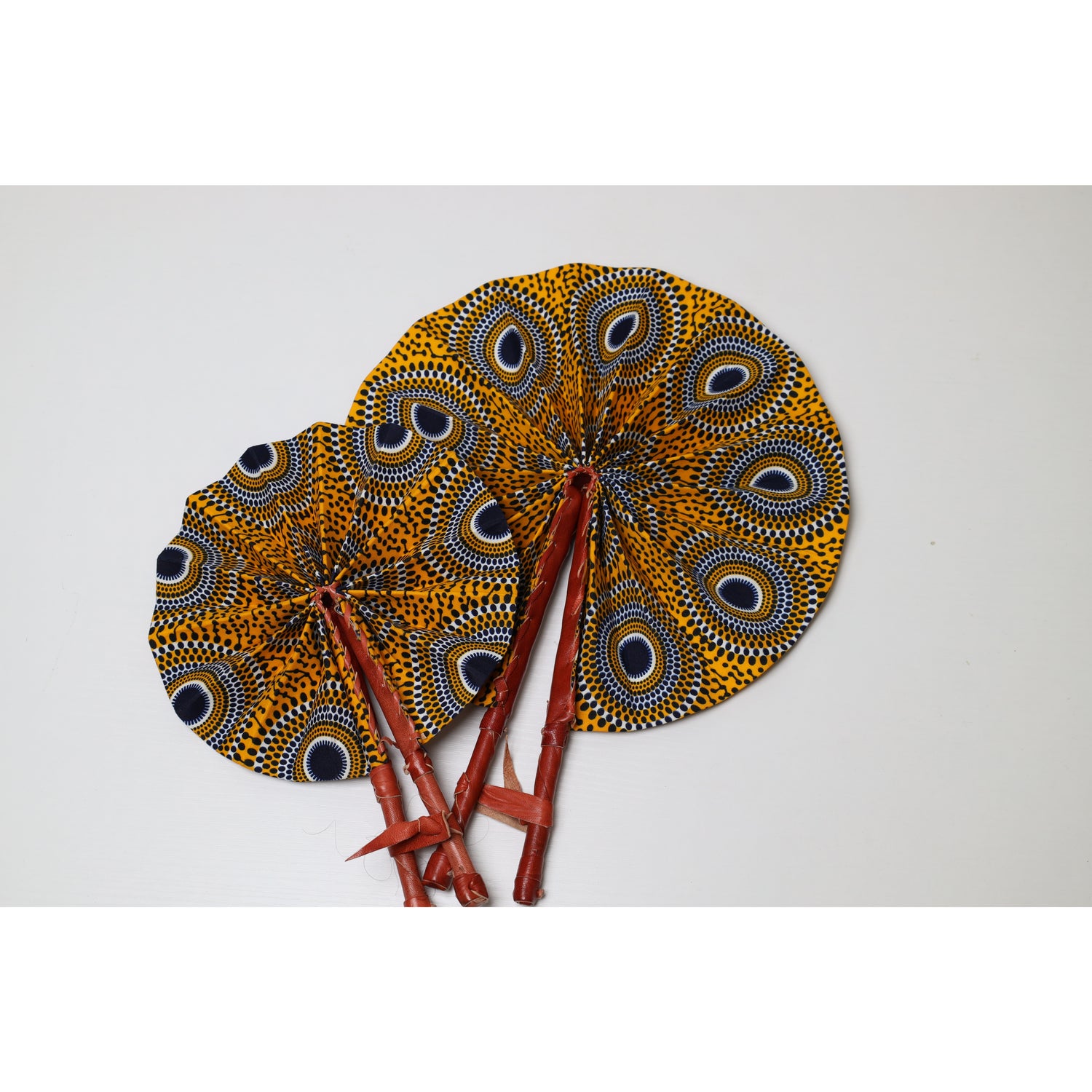 Its a Beautiful, African, hand-held fan made from colorful Ankara or African fabric crafted in the genuine leather handle and finishing. Fits into your purse as it folds into approximately 12”x 2.5”. Diameter when open is approximately 12”x 15” Ideal for home decor or cooling yourself off in tropical summer weather, perfect for a gift and wedding favors. Find one for your African dress accompaniment.