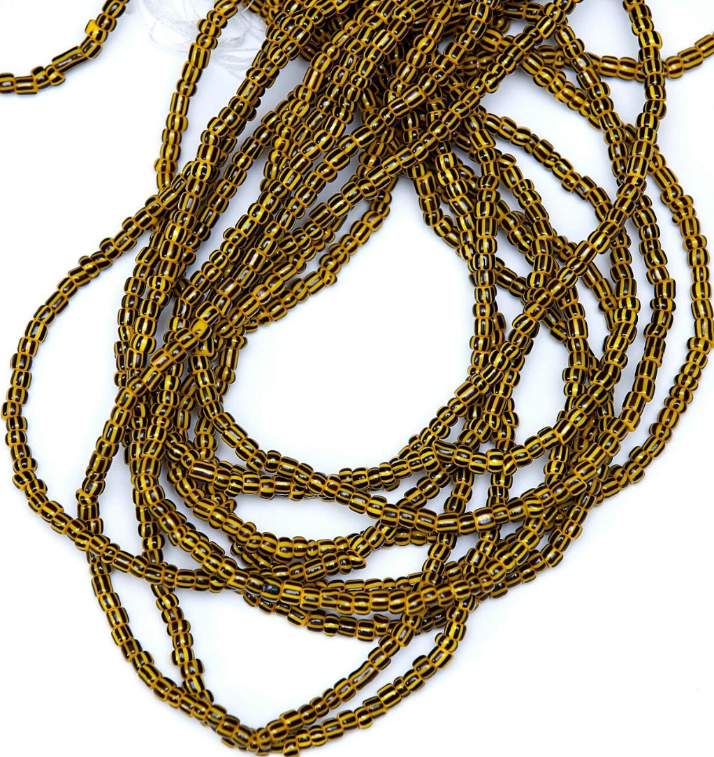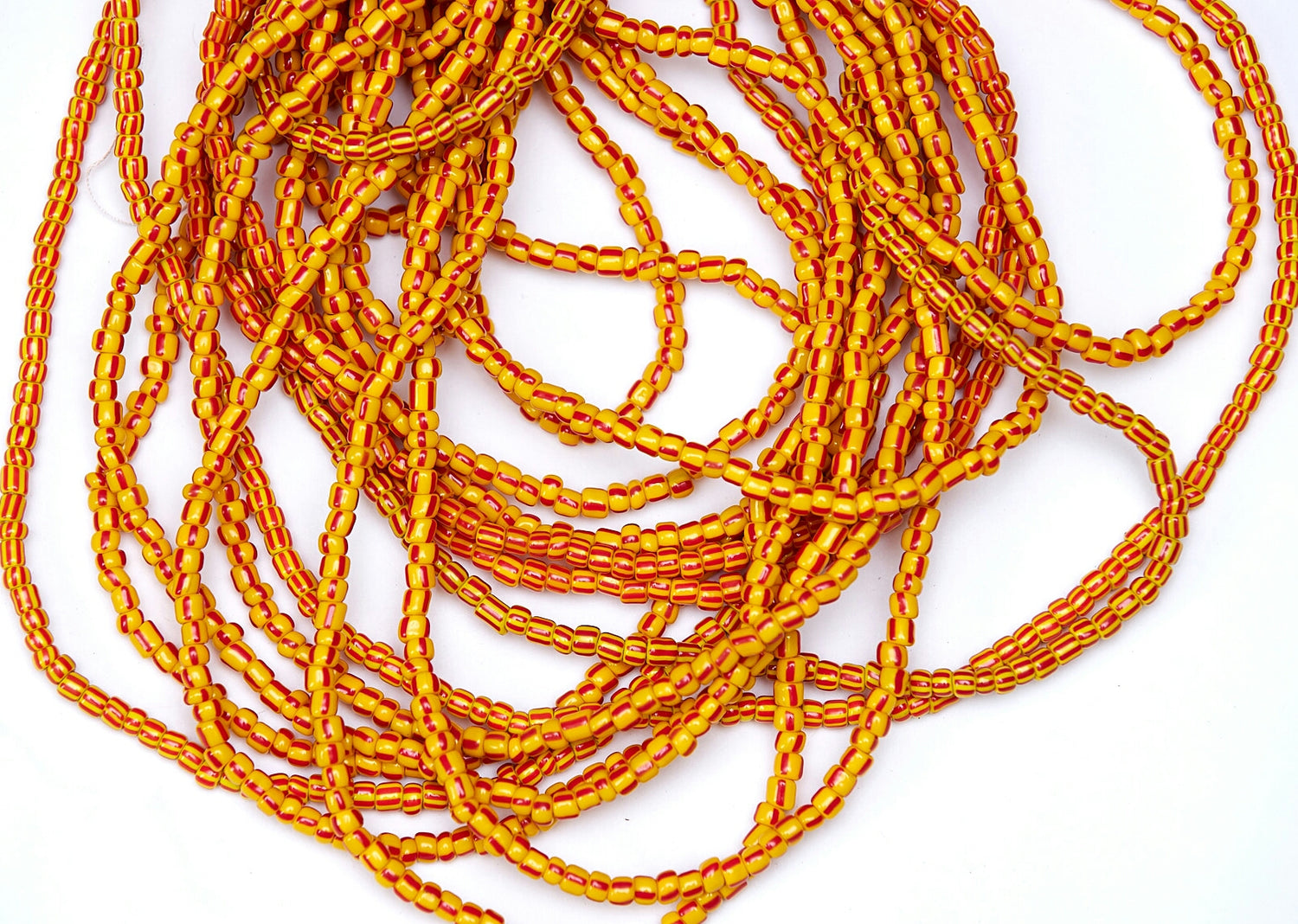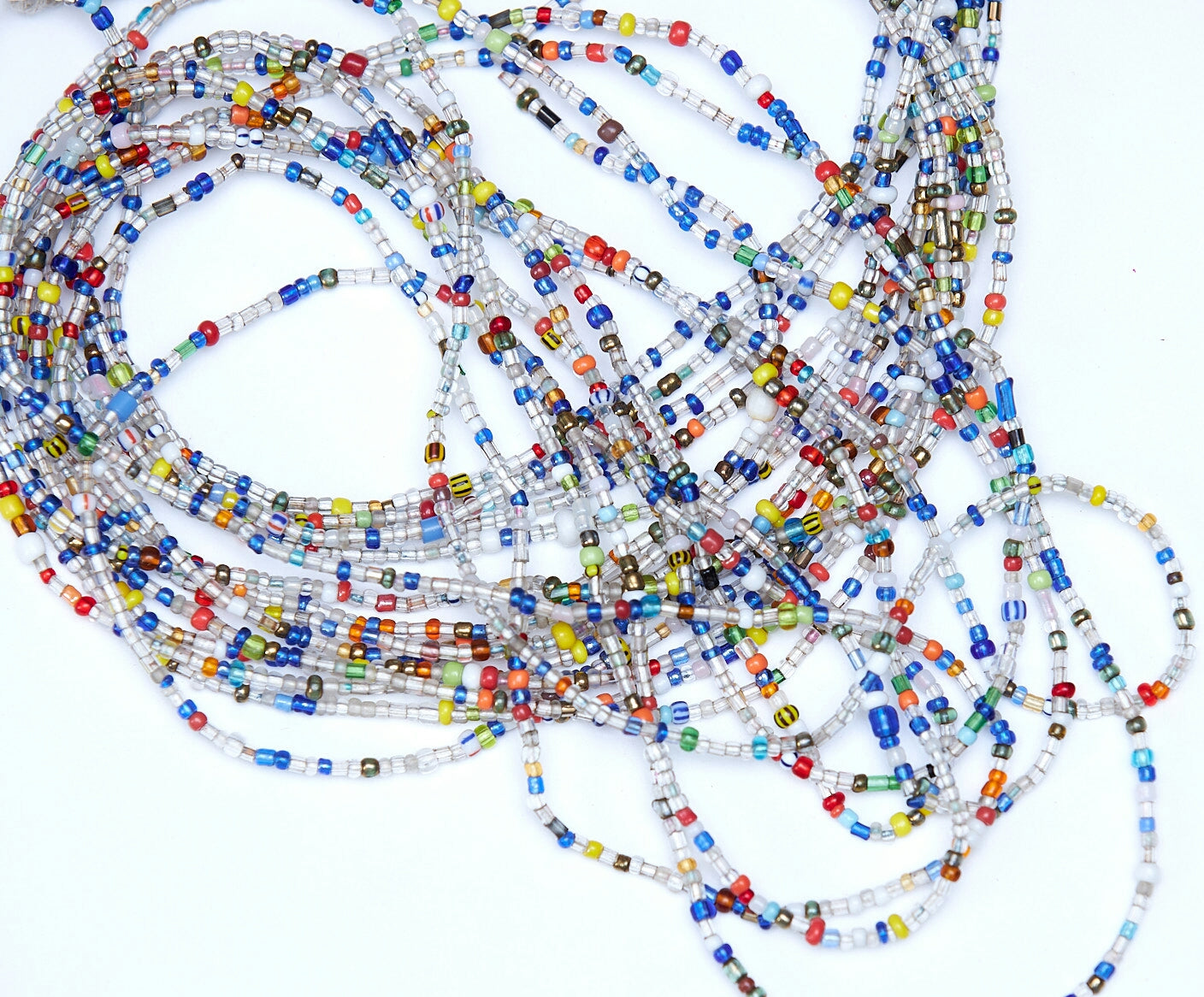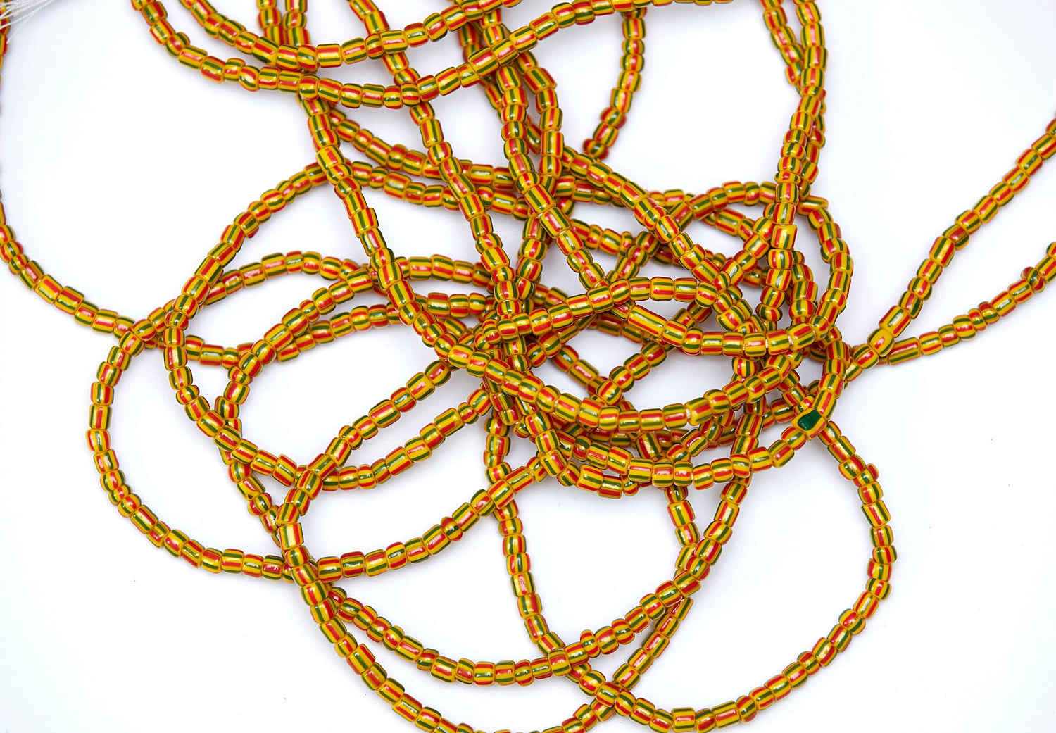 PLEASE measure your waist to ensure that your beads sit on the area that you desire. T8o easily measure your waist choose a location along your waist or under your navel where you would like your beads to sit and wrap a string or fabric measuring tap around that area of your waist with your stomach relaxed. Do not hold the string or measuring tape around your waist tightly as that may cause a wrong measurement or a tightly fitted set of waist beads (which will ultimately end up rolling up to the next smallest area along your waist). If you are using a string to measure your waist mark on the string the area that the two ends meet and using a ruler or whatever other measuring devices you own to measure the string. This is in case you happen to own one of those metal measuring tapes that aren't really that flexible.