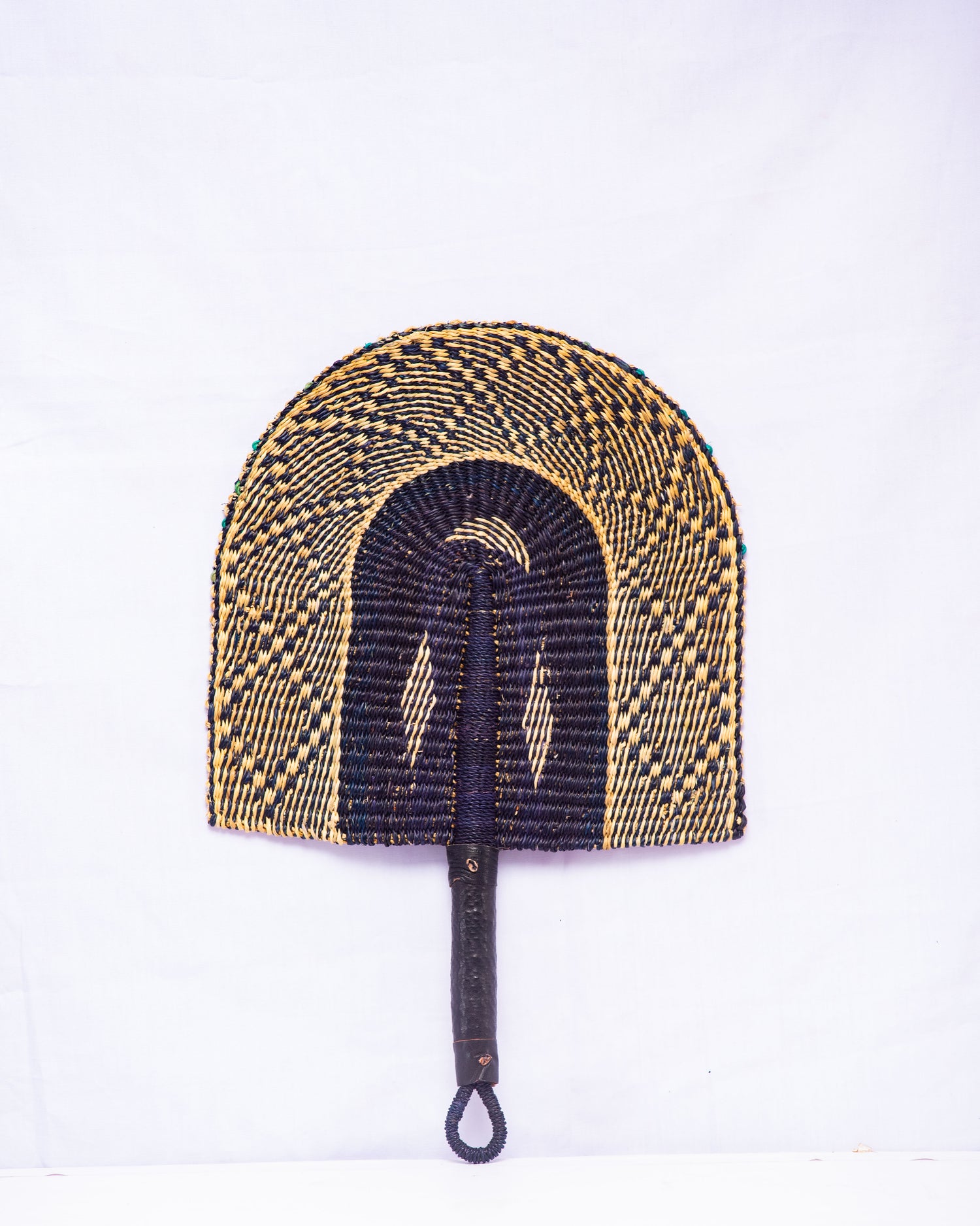 Jaah is a woven handfan from the Northern part of Ghana. Made of strong but flexible straw and A LEATHER based handle that makes it easy to hold in your palm.
