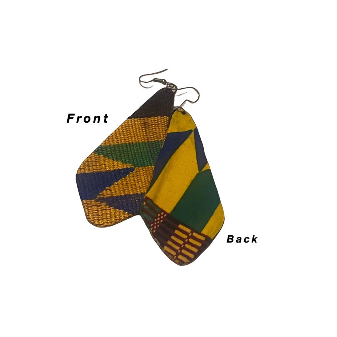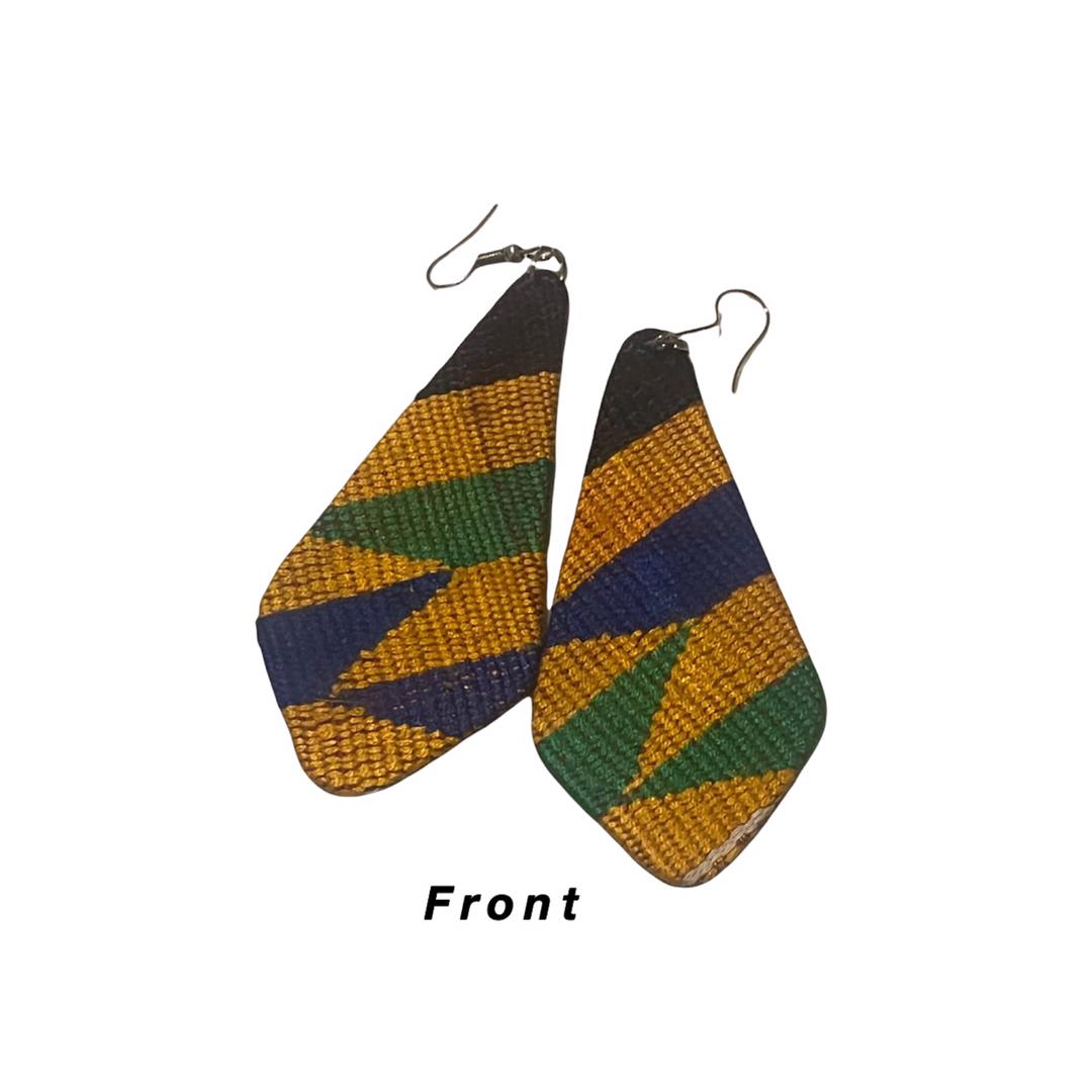 The African Style,Beautiful handmade kente cloth earrings Made in Ghana. Earrings are light weight covered with Quality Handwoven Kente cloth. Earrings shown are About 3.0” or more. unique one piece only earring lightweight for looking glam and feeling feminine