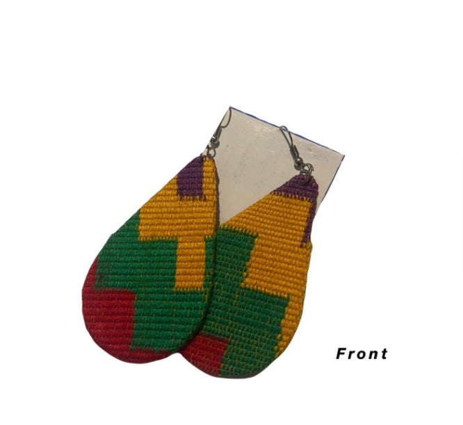 The African Style,Beautiful handmade kente cloth earrings Made in Ghana. Earrings are light weight covered with Quality Handwoven Kente cloth. Earrings shown are About 3.0” or more. unique one piece only earring lightweight for looking glam and feeling feminine.