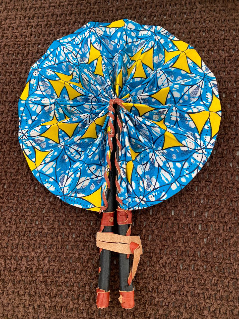Its a Beautiful, African, hand-held fan made from colorful Ankara or African fabric crafted in the genuine leather handle and finishing. Fits into your purse as it folds into approximately 12”x 2.5”. Diameter when open is approximately 12”x 15” Ideal for home decor or cooling yourself off in tropical summer weather, perfect for a gift and wedding favors. Find one for your African dress accompaniment.
