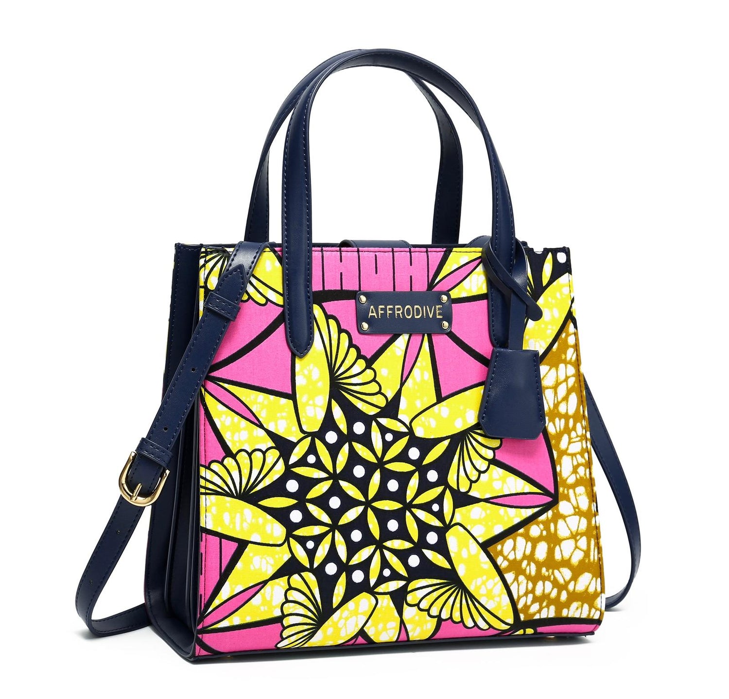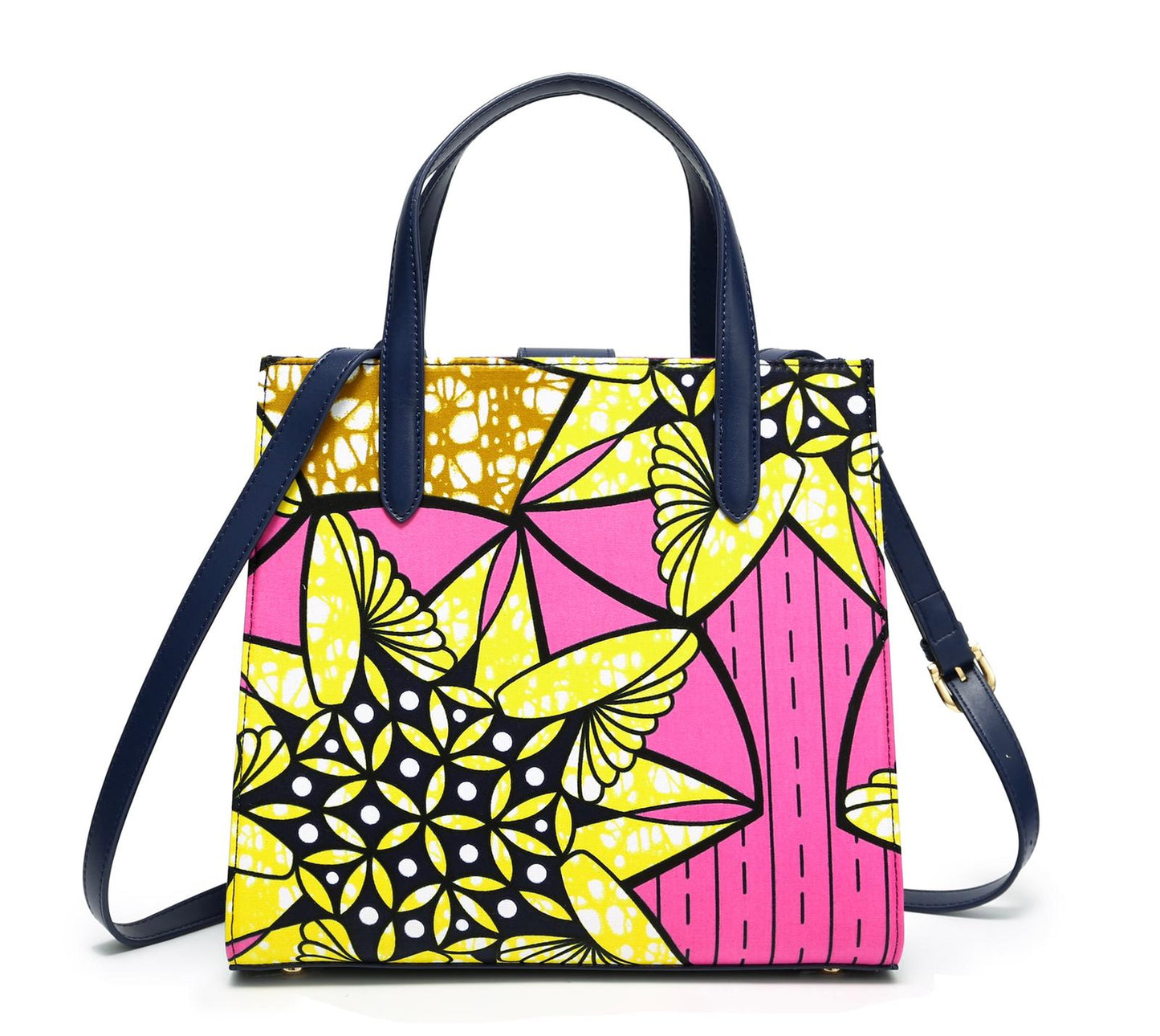 Mawusi is a modern-day icon with a blend of Ankara wax Print and leather. Mawusi is a traditional Ewe name which means "In God's hands". Mawusi handbag has 3 compartments for easy everyday organization and side straps that adjusts when you need a little more room. Carry by the handles or attach the adjustable strap for hands-free wear