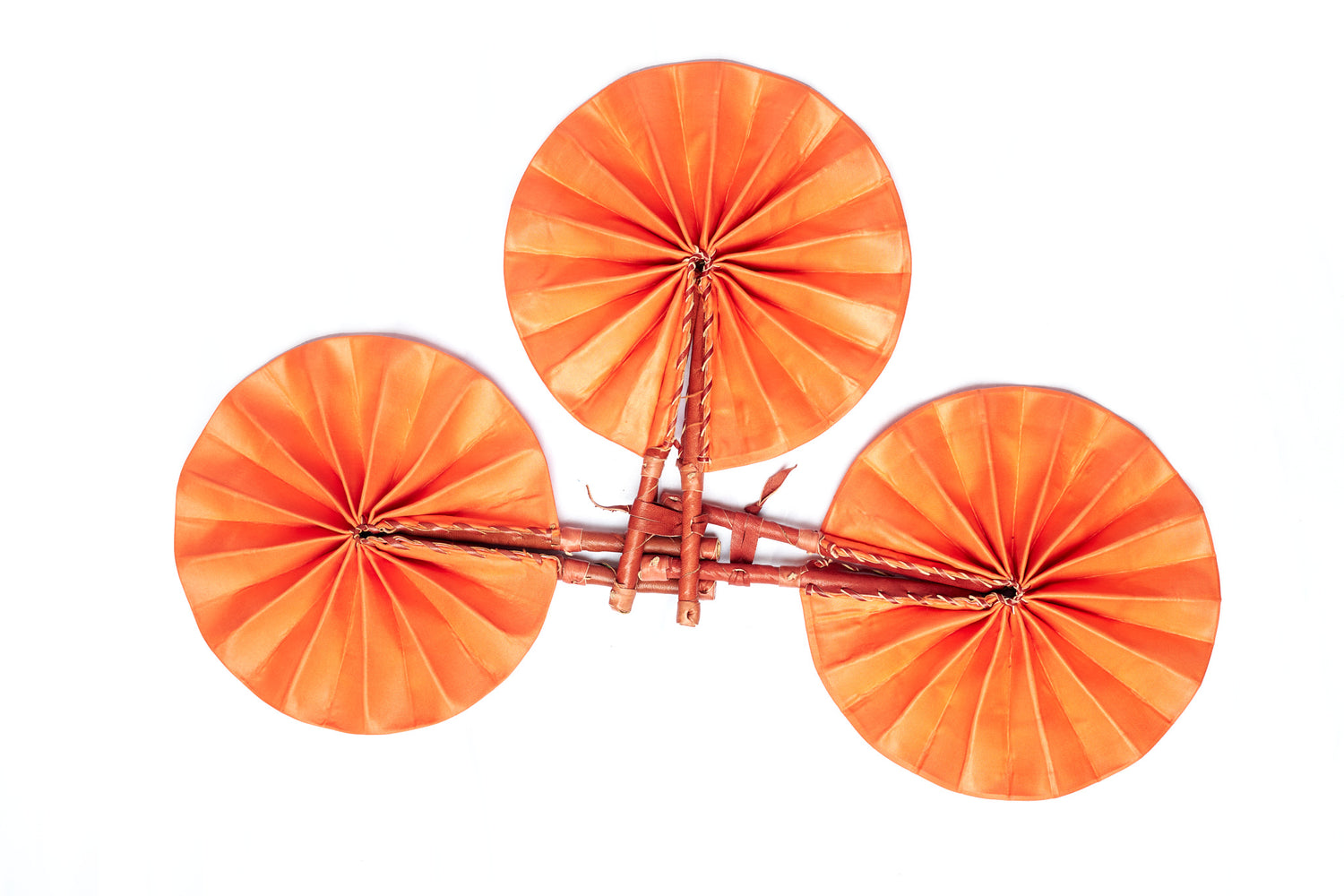 This is a Beautiful, African, hand-held fan, made from colorful African fabric crafted in the genuine leather handle and finishing. Fits into your purse as it folds into approximately 12”x 2.5”. Diameter when open is approximately 12”x 15” Ideal for home decor or cooling yourself off in tropical summer weather, perfect for a gift and wedding favors. Find one for your African dress accompaniment. We take large wedding orders.