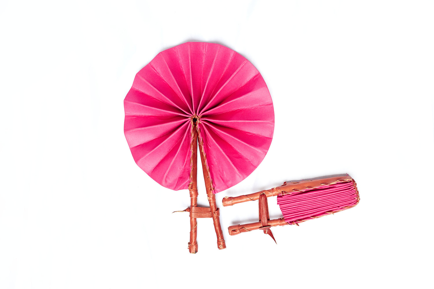 This is a Beautiful, African, hand-held fan, made from colorful African fabric crafted in the genuine leather handle and finishing. Fits into your purse as it folds into approximately 12”x 2.5”. Diameter when open is approximately 12”x 15” Ideal for home decor or cooling yourself off in tropical summer weather, perfect for a gift and wedding favors. Find one for your African dress accompaniment. We take large wedding orders.