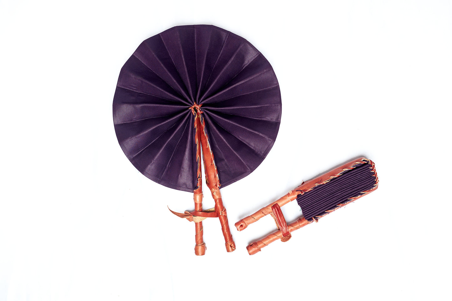 This is a Beautiful, African, hand-held fan, made from colorful African fabric crafted in the genuine leather handle and finishing. Fits into your purse as it folds into approximately 12”x 2.5”. Diameter when open is approximately 12”x 15” Ideal for home decor or cooling yourself off in tropical summer weather, perfect for a gift and wedding favors. Find one for your African dress accompaniment. We take large wedding orders.