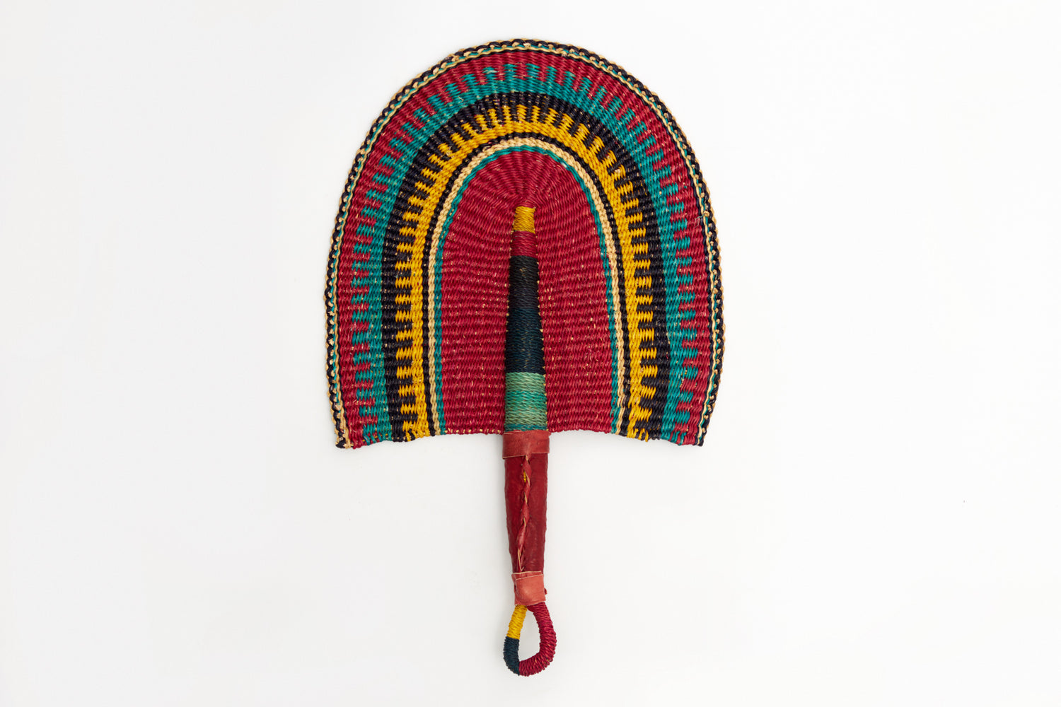 Silvia is a woven handfan from the Northern part of Ghana. Made of strong but flexible straw and A LEATHER based handle that makes it easy to hold in your palm.