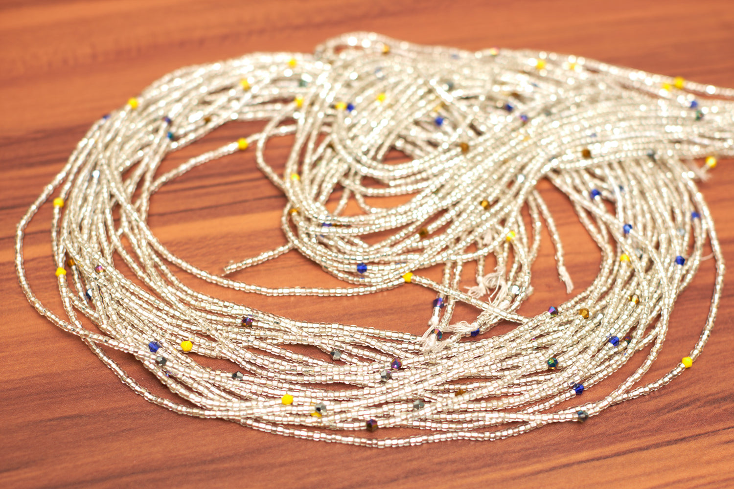 PLEASE measure your waist to ensure that your beads sit on the area that you desire. To easily measure your waist choose a location along your waist or under your navel where you would like your beads to sit and wrap a string or fabric measuring tap around that area of your waist with your stomach relaxed. Do not hold the string or measuring tape around your waist tightly as that may cause a wrong measurement or a tightly fitted set of waist beads (which will ultimately end up rolling up to the next smallest area along your waist). If you are using a string to measure your waist mark on the string the area that the two ends meet and using a ruler or whatever other measuring devices you own to measure the string. This is in case you happen to own one of those metal measuring tapes that aren't really that flexible.