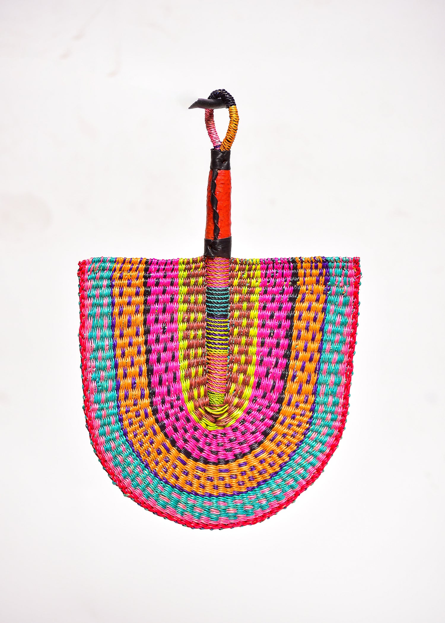 Solo is a woven handfan from the Northern part of Ghana. Made of strong but flexible straw and A LEATHER based handle that makes it easy to hold in your palm.