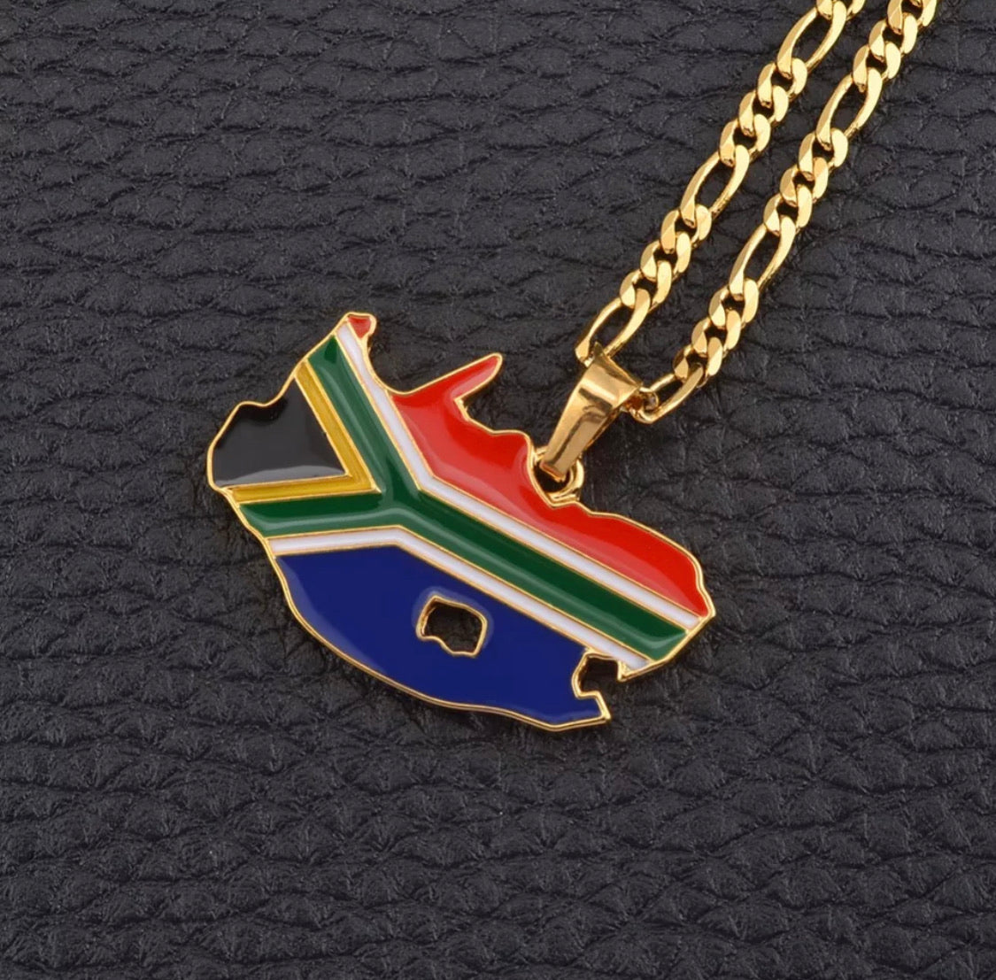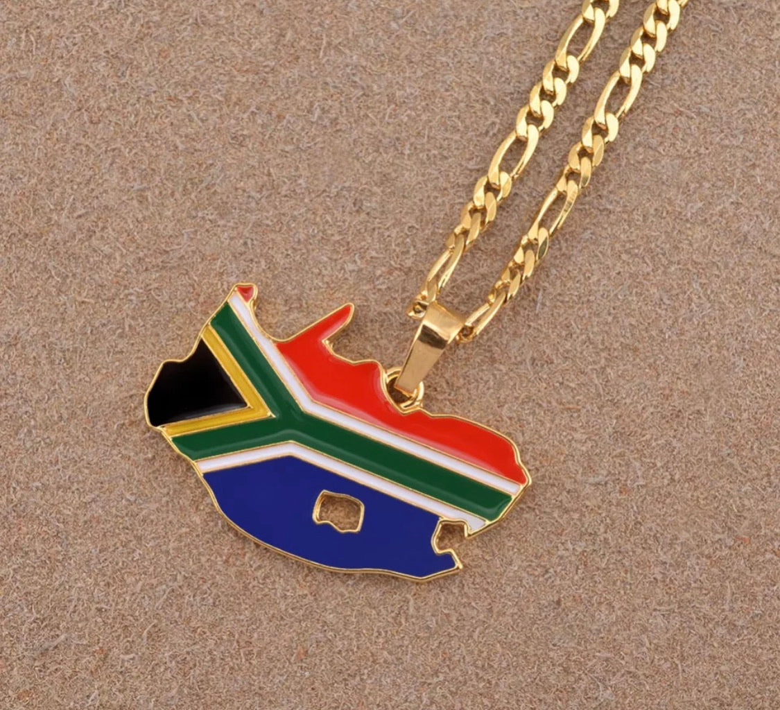 South Africa Map&Flag Pendant Necklaces Jewellery Gold Color for Women/Men,Africa Countries Maps South Africans