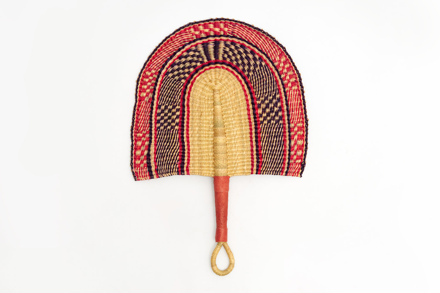 Sumayyah is a woven handfan from the Northern part of Ghana. Made of strong but flexible straw and A LEATHER based handle that makes it easy to hold in your palm.