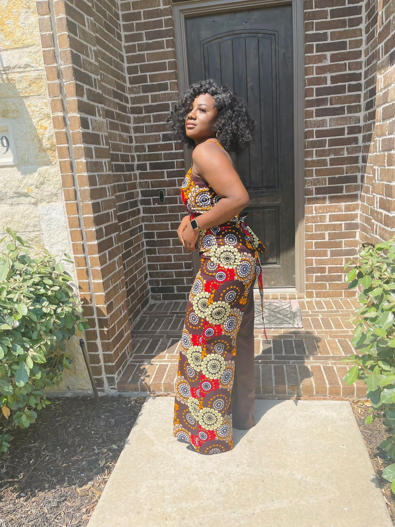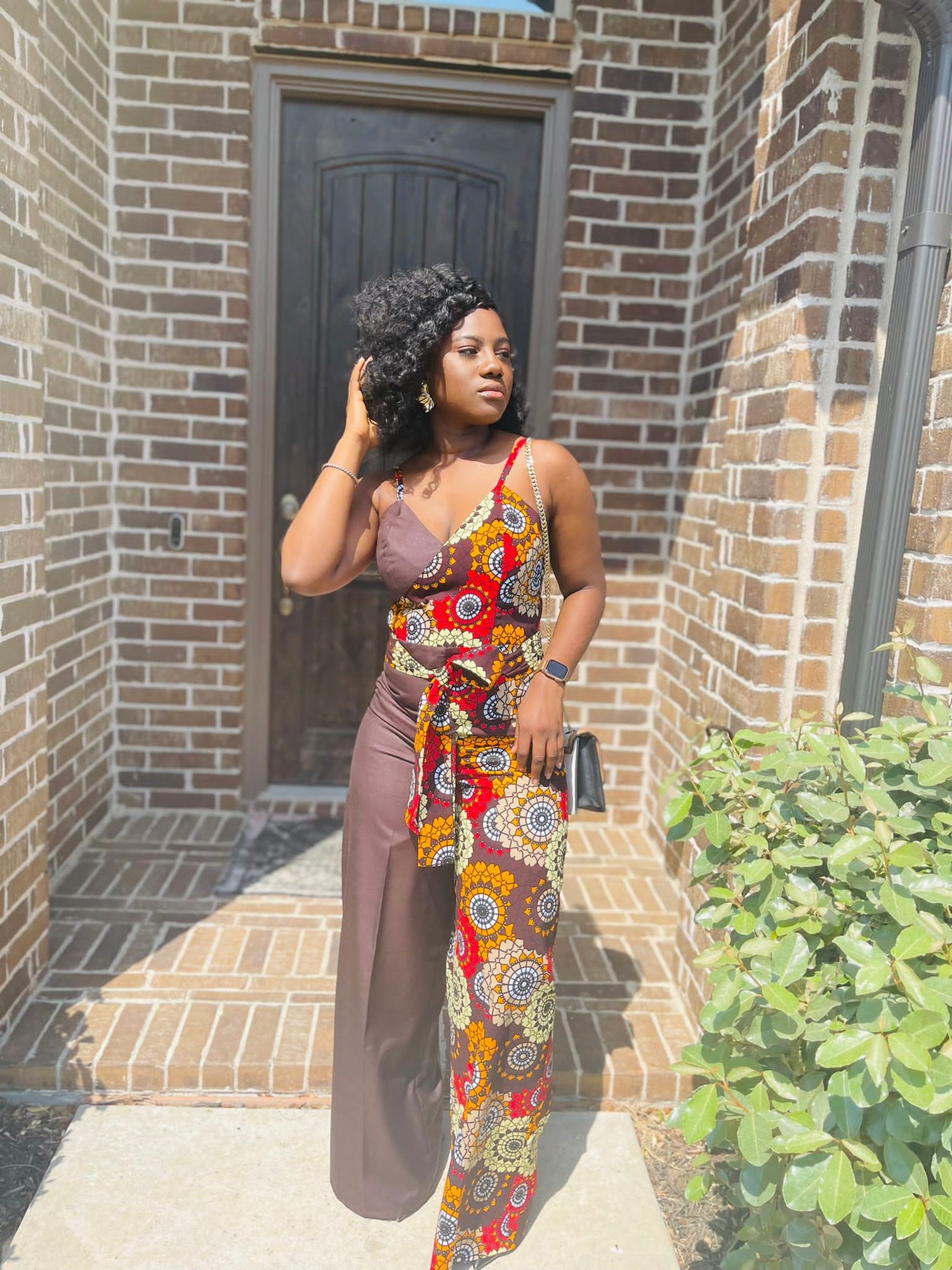 This Jumpsuit is Beautifully made with vibrant African print blended colorful Ankara and Lycra fabric,Designed and made in Ghana .Our jumpsuit is designed to make you look fashionable ,comfortable,Sexy, Stylish,and very noble.